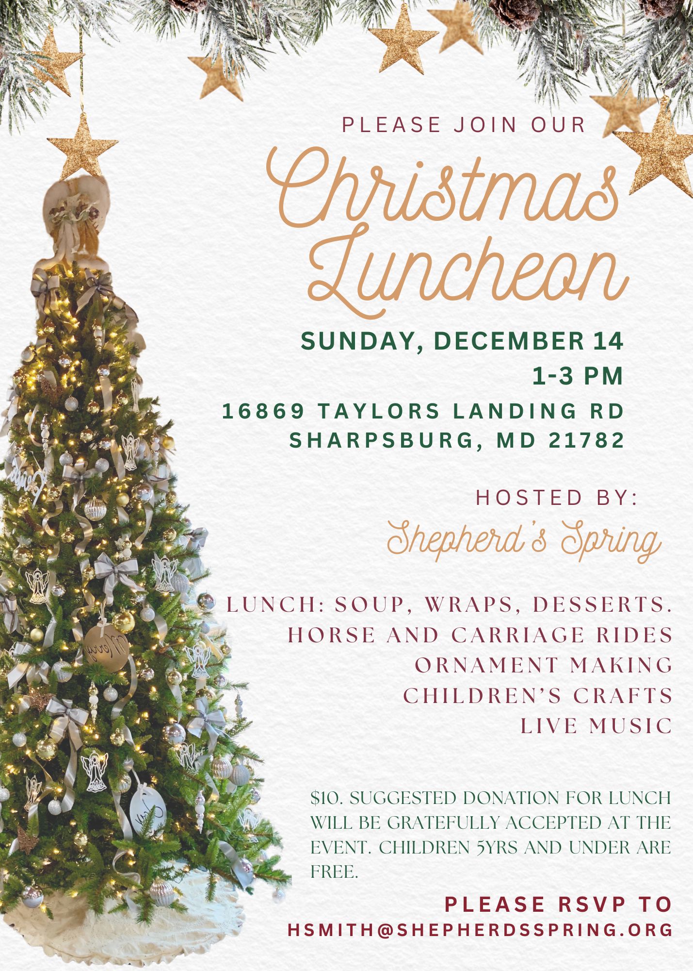 Sunday, December 14, 1 - 3 pm Christmas Luncheon at Shepherd's Spring